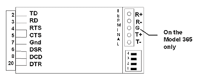 RS-485: In the four-wire mode the Model 285/365 receiver is always