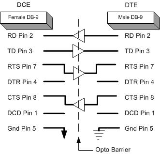 Connectors: DTE = DB-9M, DCE = DB-9F