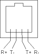 Nota: Los cuatro alambres entre los dos Mo-dems es preferible que sean 2 pares torcidos (UTP). En cada Modem los alambres conecta-dos a los puntos T+ y T- tienen que ser uno de los pares y los marcados R+ y R- el otro par.