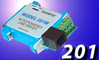 The Model 201 RS-232 Auto Powered Line Driver requires only TD, RD and GND for power and full duplex operation up to 19.2 KBPS.