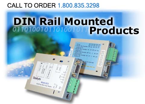 Great prices on RS232, RS422, RS485 DIN Rail mounted surge suppressors, modems, fiber optics and interface converters from Telebyte |