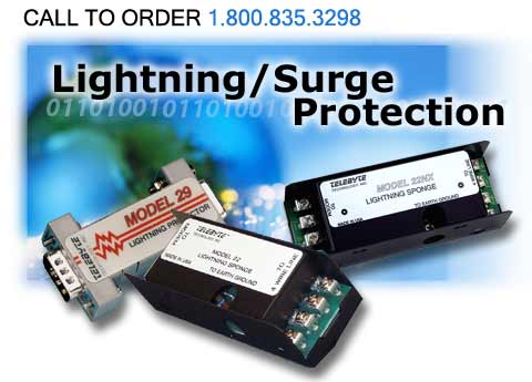 High-voltage transients (power surges) caused by lightning or other electrical disturbances have the ability to cause serious damage to equipment and valuable data. Telebyte's line of Lightning/Surge Protectors includes products designed to accommodate these transients, slow them down and redirect them to a low impedance path-to-earth ground. |